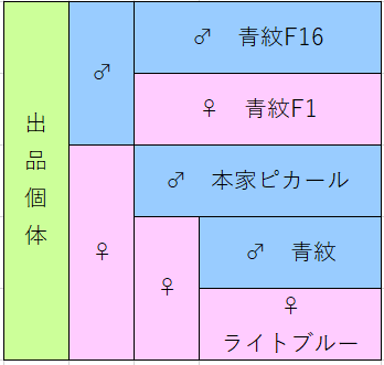 次世代での青紋の発現を保証するものではありませんが、25%程度の確率で青紋が発現する計算になります。