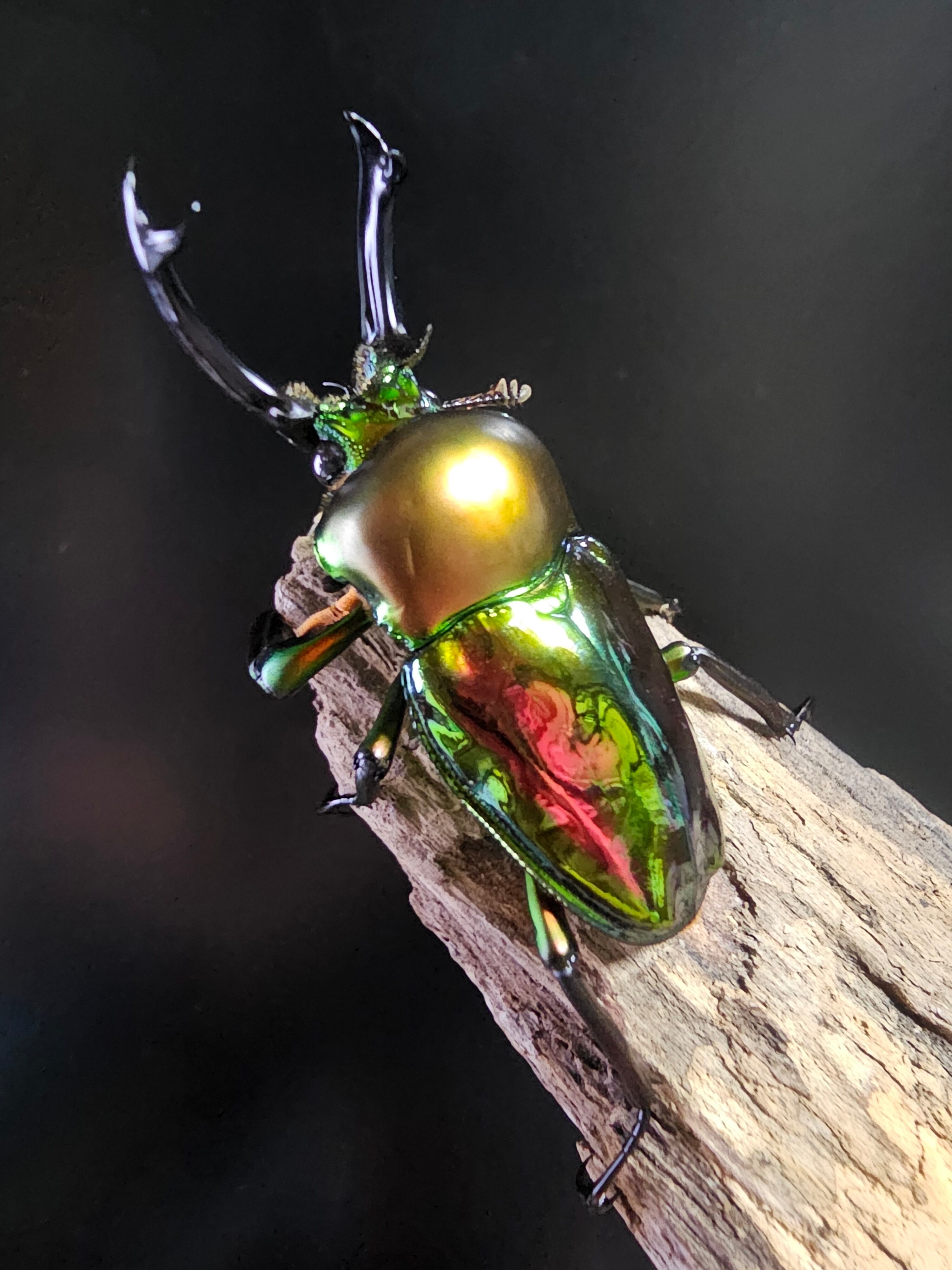 世界一美しいクワガタとして知られるニジイロクワガタのペアです。