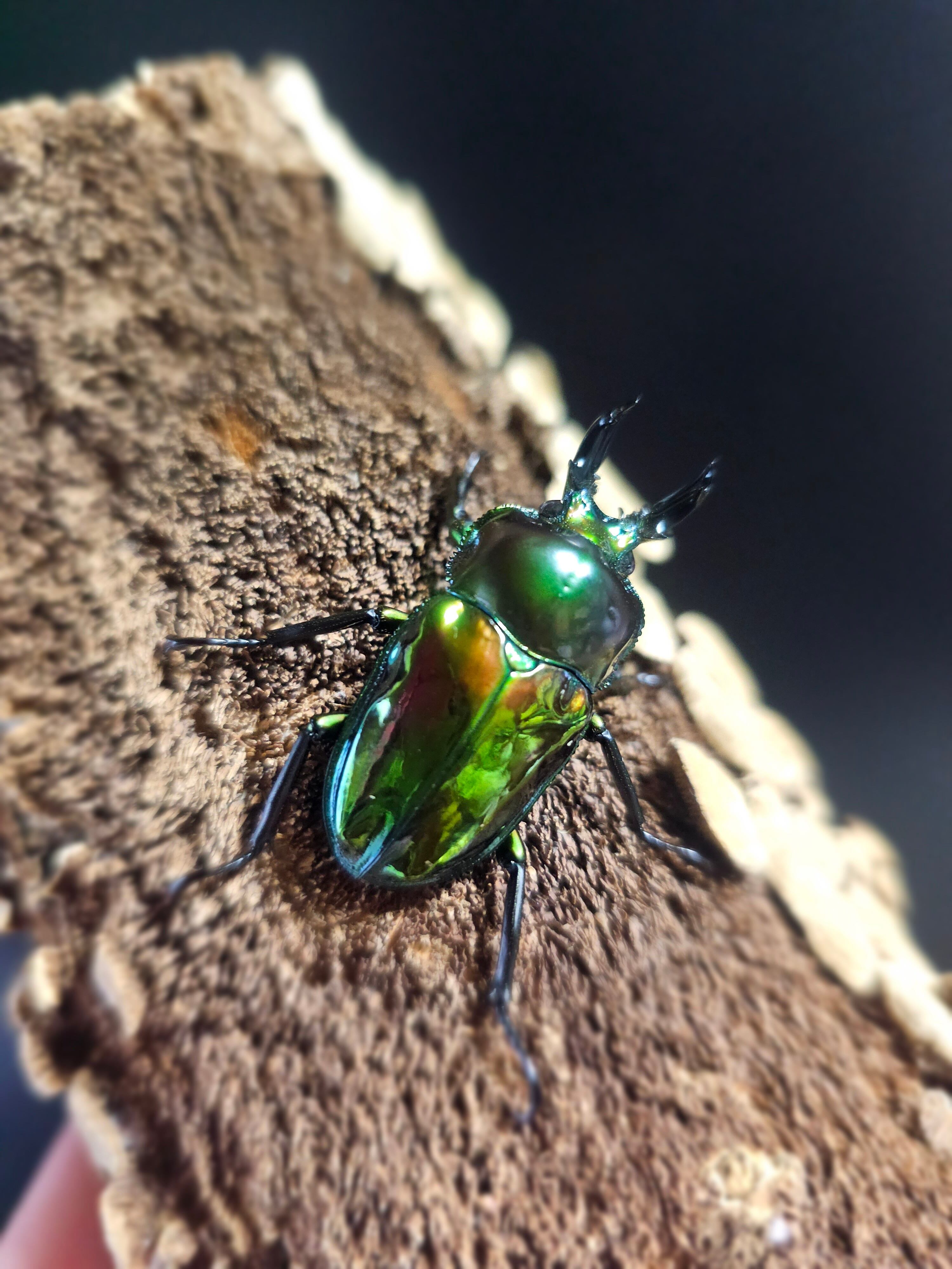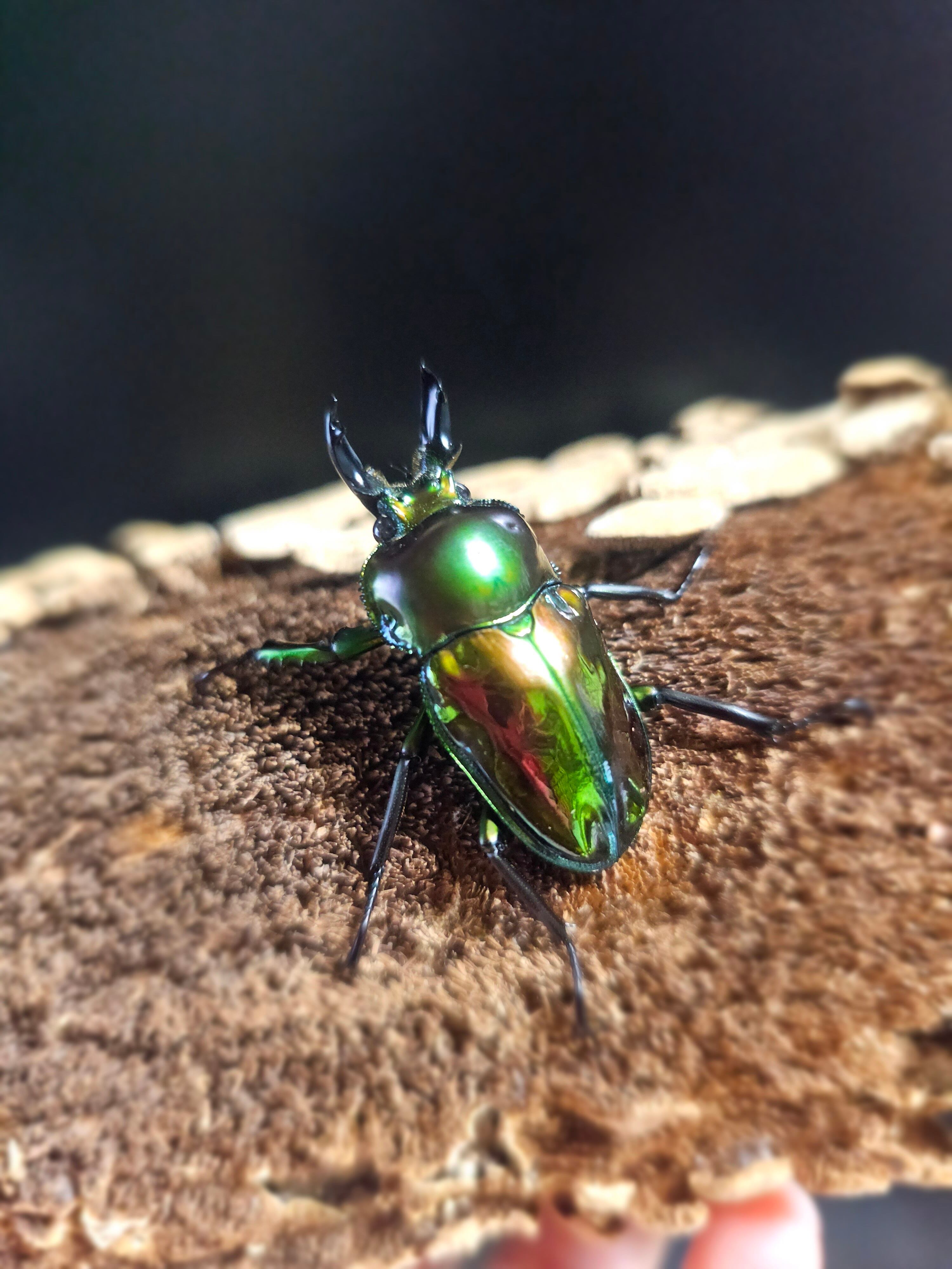 ♂個体の艶は弱いですが前胸背板のグリーンが非常に濃く、♀個体の艶は強いです。